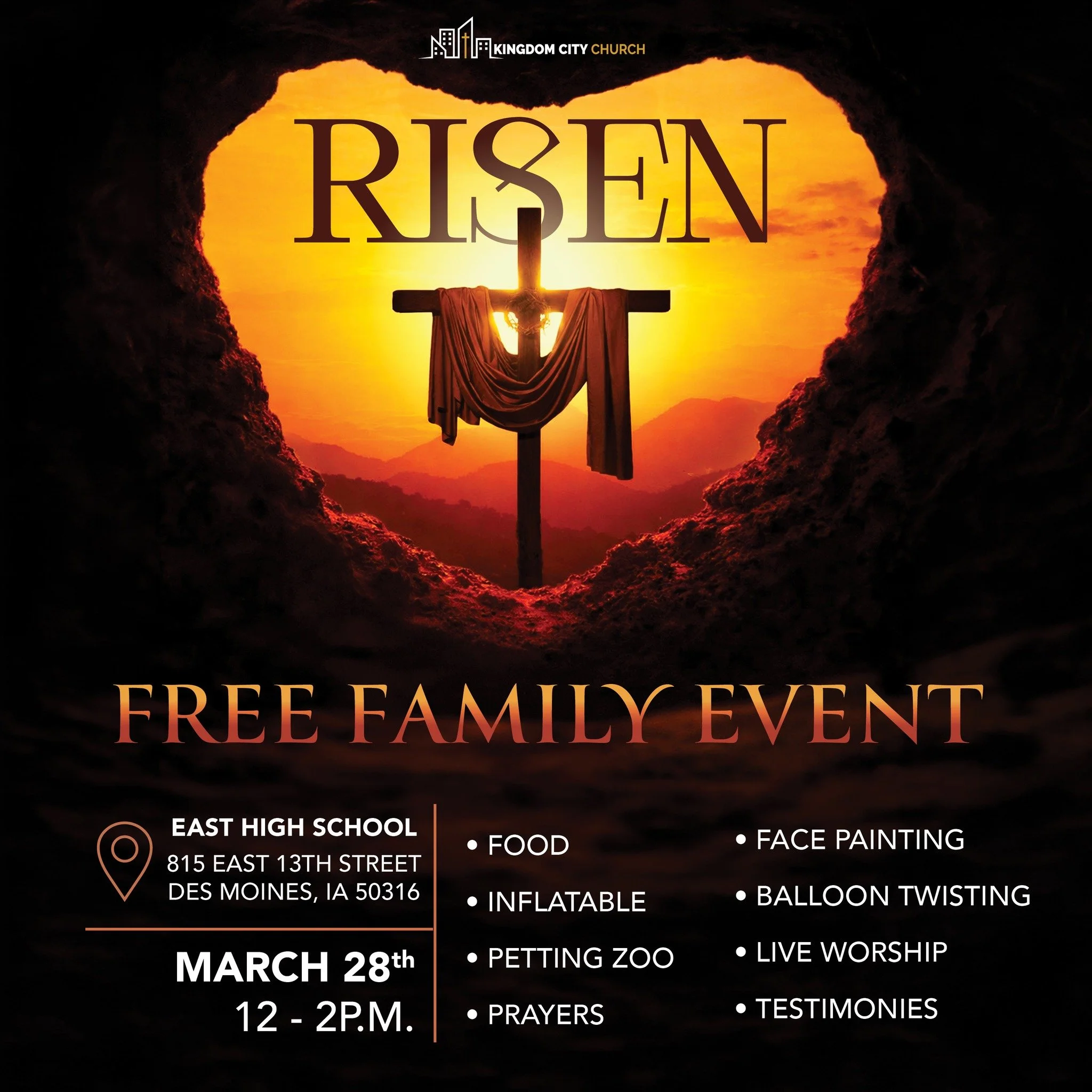 You're warmly invited to bring your family and friends to experience and celebrate our 4th annual Easter Outreach and celebration of the resurrection of Jesus Christ.