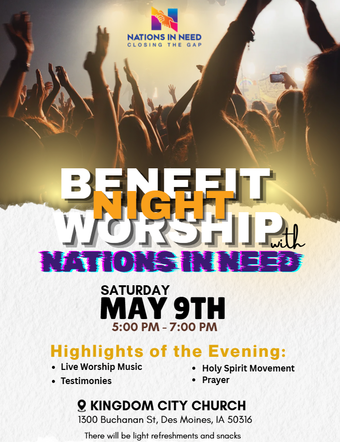 Join us for a powerful and uplifting Benefit & Worship Night at Kingdom City Church! This will be a special evening filled with live worship, heartfelt testimonies, and prayer—all led by the Holy Spirit.
